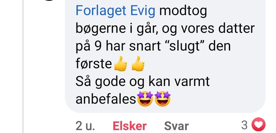 "Karla har fået din bog, og hun synes, den er mega god😊.…